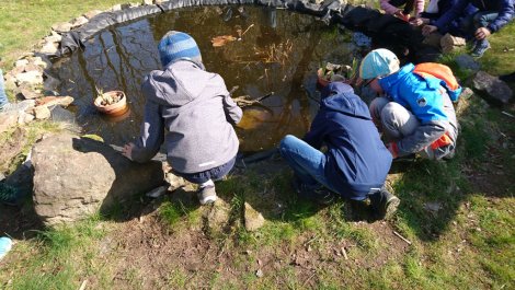Im Teich lebt so einiges... Kinder der Grundschule kommen den Wasserlebewesen ganz nahe. (Foto: D. Zieschang)
