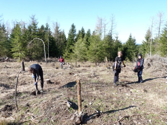 Das eigentlich für Anfang April geplante "Bäumchenpflanz-Wochenende" mitsamt dem daran geknüpften Pflanzeinsatz Altenberger Schüler fiel leider den Corona-Bestimmungen zum Opfer. Stattdessen trafen sich einige Tage später drei engagierte Mitglieder der Madagaskar-AG des Gymnasiums, um zumindest einen Teil der schon bestellten und gelieferten Bäume in den steinigen Boden am Kahleberg-Westfuß zu pflanzen. Diese Aktion geschah gerade noch rechtzeitig, bevor Dauersonnenschein und extrem trockene Luft auch hier die Wälder ausdörrten.