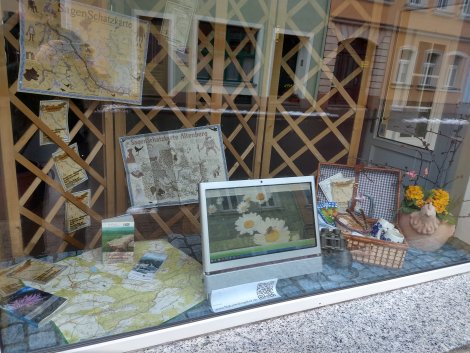 Ein Schaufenster in Frauenstein mit Foto-Monitor. Auch nach Ladenschluss und im Dunkeln ein Hingucker! (Foto: N. Kochan)