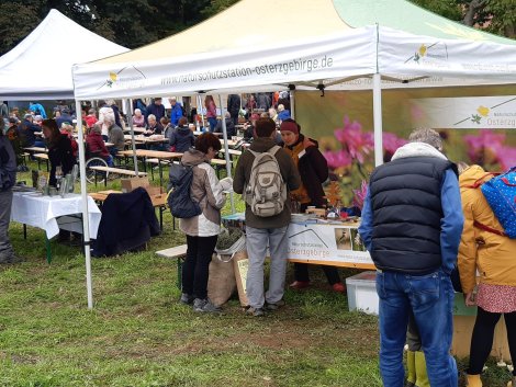 Das Bergwiesenfest in Königstein / Ebenheit, zu Füßen des Liliensteins, fand vergangenen Sonntag zum 17. Mal statt. Die Naturschutzstation war vor Ort - schließlich sind Bergwiesen "unser" Thema! Der Besucherzuspruch auf dem gesamten Fest war sehr rege, das war auch am Infostand der Naturschutzstation spürbar. Groß und Klein hatten sich an diesem kühlen Herbsttag aufgemacht, um den Naturmarkt, Umweltbildungsangebote, Exkursionen, Bauernhof-Tiere und Kutschfahrten zu erleben.