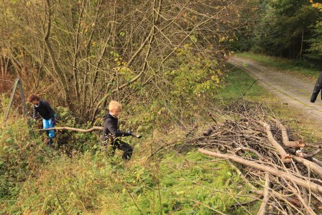 Beim Arbeitseinsatz neulich hieß es, Astwerk zwischen Büschen und Gehölzen hervorzuziehen und aufzustapeln. Keine ganz leichte Aufgabe, doch die Schüler trugen gemeinsam mit Umweltbildnern und ihrer Lehrerin einen stattlichen Haufen zusammen. Dieser wird im Nachgang durch eine Firma entsorgt.