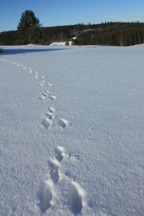 Hoppelspuren im Schnee - das war ein Hase. Alles über Wildtierspuren erfahrt ihr beim JuNa-Praxistag. (Foto: S. Klingner)