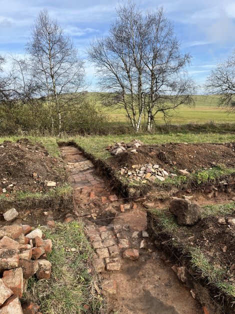 Ausgrabungsstelle der historischen Kapelle an der Grenze in Vorderzinnwald - die Bodenfliesen sind noch zu sehen (Foto: J. Pollakis)