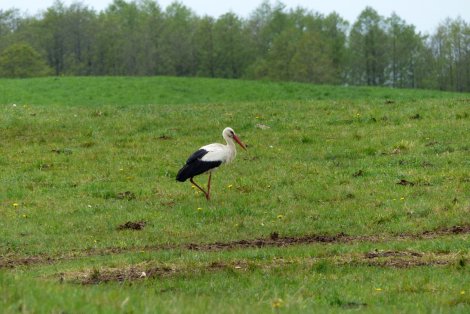 "Auf der Wiese gehet was..." - Weißstorch auf Nahrungssuche. (Foto: S. Heinz)