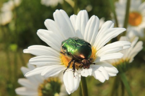 Insekten wie dieser Rosenkäfer sind faszinierende, schillernde, geheimnisvolle Wesen. Ihnen und den Fliegern der Nacht - Fledermäusen - folgt ihr beim Wochenendcamp im August! (Foto: S. Klingner)