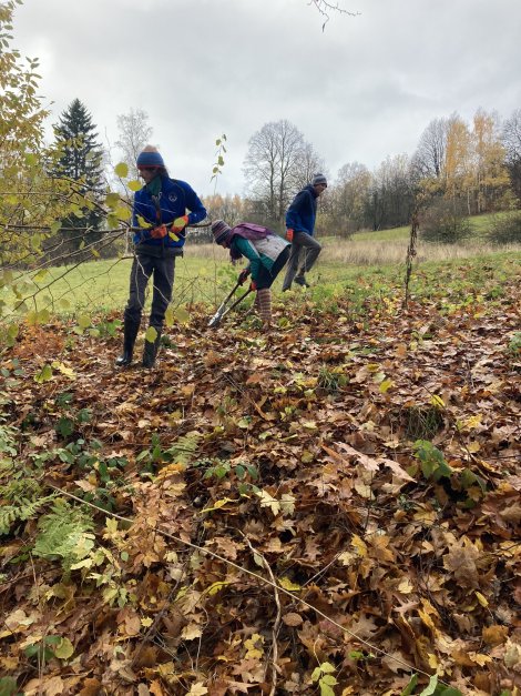 Um die Vielfalt und Schönheit einer Bergwiese zu bewahren, reicht die Mahd, Heugewinnung oder die Räumung der Grünmasse in den Sommermonaten oft nicht aus. Die Flächen müssen offen gehalten werden, sonst verbuschen sie und die Artenvielfalt der Wiese leidet zum Beispiel durch Schatten. Aus diesem Grund trafen sich acht Jugendliche vom 17.-19. November für die letzten Einsätze im Jahr 2023 in der Biotoppflegebasis im Bielatal.