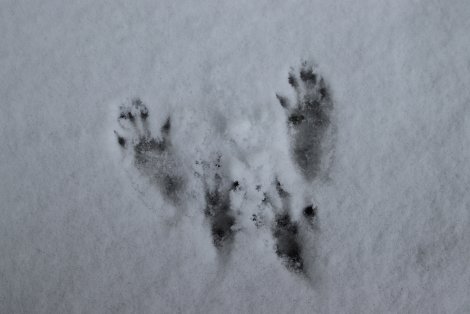 Die Spur eines Eichhörnchens im Schnee. (Foto: S. Klingner)