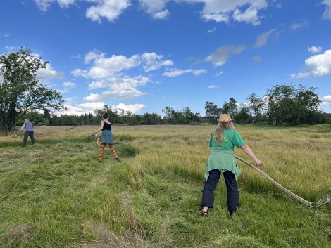 Insektengerechte Wiesenmahd mit Handsense und Balkenmäher