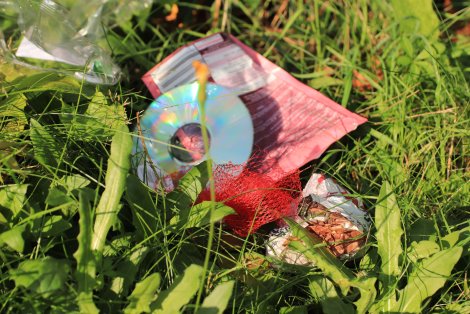 Müll in der Wiese - weg damit! Helft uns bei der Müllsammelaktion zum World-Cleanup-Day am 16.9. (Foto: S. Klingner)