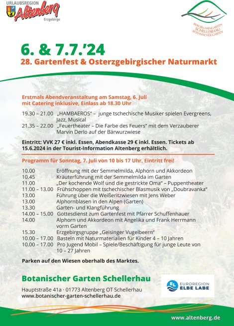 Botanischer Garten Schellerhau: Gartenfest & Osterzgebirgischer Naturmarkt 6.-7.7.
