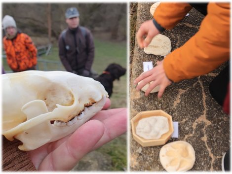 Die „JuNas“, wie die Jungen Naturwächter genannt werden, konnten bei der Tour auch ihr Wissen testen und erweitern. Tierspuren aus Gips mussten zugeordnet werden – bei der Zahl der Tierarten keine ganz leichte Aufgabe. Manch einer verglich die Spuren dann gleich mit den Trittsiegeln im Schlamm auf den Wegen. „Ich würde gern mal einen Streifzug mit dem Jäger am Abend machen“, hörte man von manchen Teilnehmern.