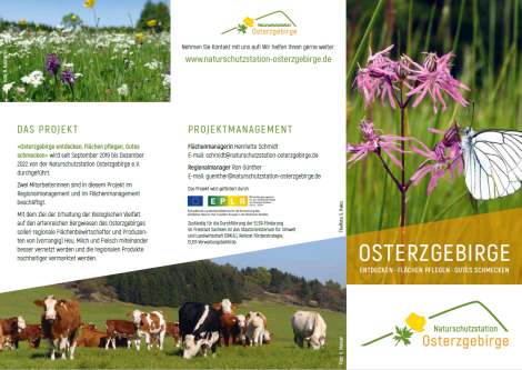 Mit der im Projekt entwickelten Heu- und Flächenbörse möchten wir Landwirten die Möglichkeit geben, ihr Heu bzw. ihre Flächen auch nach Ablauf des Projekts online anzubieten oder nachzufragen. Außerdem bietet die Projektbroschüre "Wiese, Weide, Ware" die Möglichkeit, Tipps zur nachhaltigen Grünland-Bewirtschaftung zu finden. Es werden zudem Akteure vorstellt, die mit ihrer sorgsamen Bewirtschaftung zum Erhalt des artenreichen Grünlands beitragen. Wir zeigen Ihnen, wo Sie deren Produkte erwerben können. Denn mit deren Unterstützung leisten auch Sie selbst einen Beitrag zum Erhalt des artenreichen Grünlands im Osterzgebirge. Die Broschüre erhalten Sie bei uns vor Ort in der Naturschutzstation (Am Bahnhof 1, 01773 Altenberg) und finden Sie hier online.